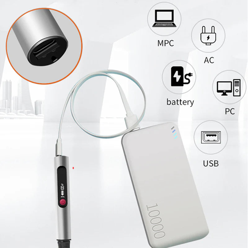 INTELIGENTNE ZARZĄDZANIE ZASILANIEM: Duża bateria o pojemności 500 mAh z ładowaniem typu C zapewnia wiele godzin nieprzerwanej pracy. Cyfrowy wyświetlacz baterii eliminuje zgadywanie, a wbudowane zabezpieczenia chronią zarówno narzędzie, jak i Twoje projekty.