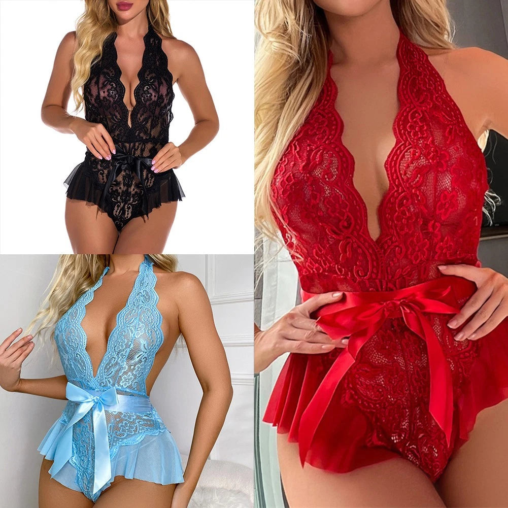 Eleganckie damskie body bieliźniane – spódnica z liści lotosu i kokardka