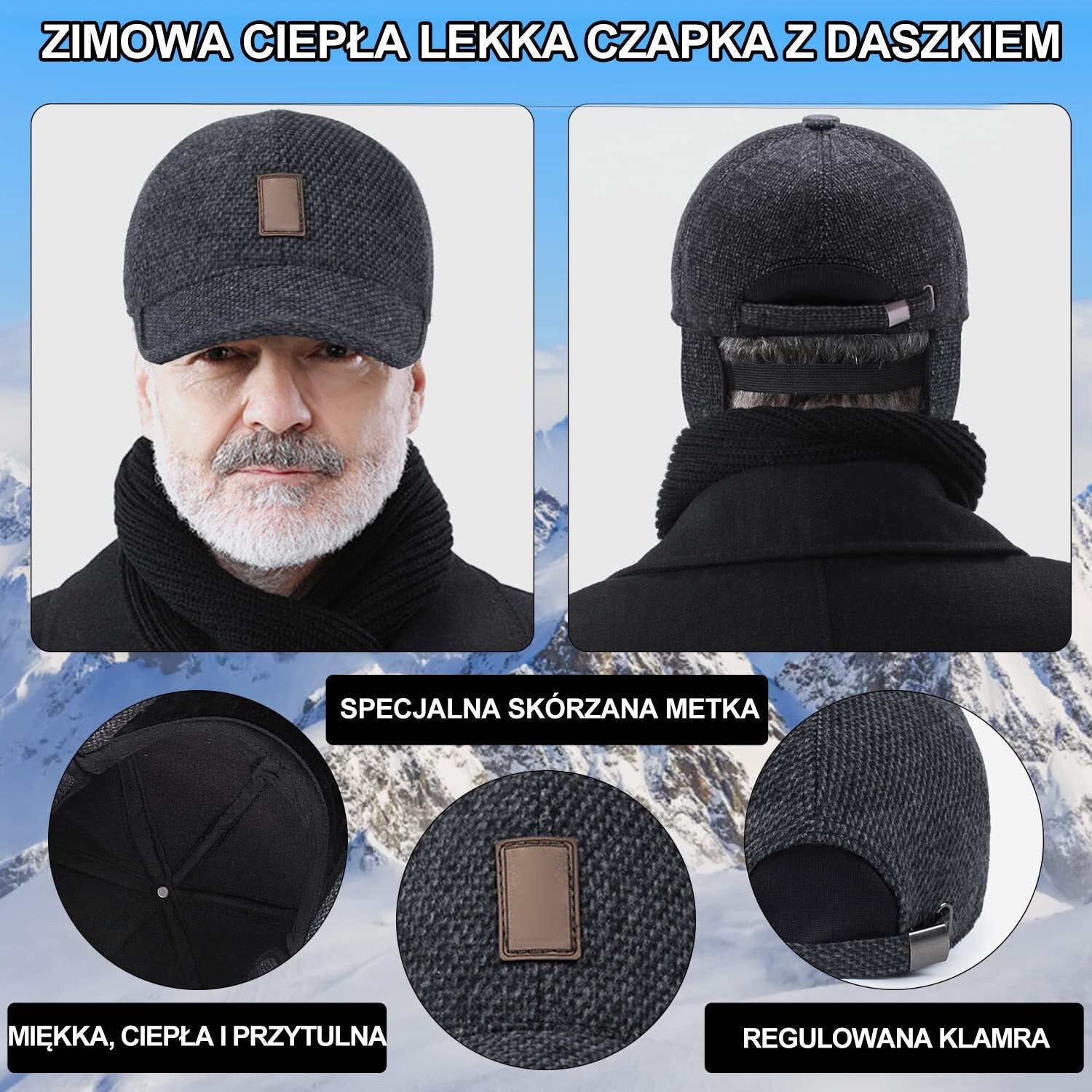 - Zimowa czapka z daszkiem jest wykonana z wysokiej jakości wełny i bawełny. Miękka podszewka ze sztucznego futra jest przyjemna w dotyku i zapewnia ciepło.
