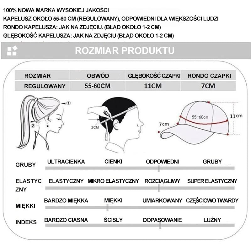 - Jeden rozmiar dla wszystkich: tylna klamra regulacyjna jest prosta i praktyczna, łatwa do dopasowania do rozmiaru głowy.