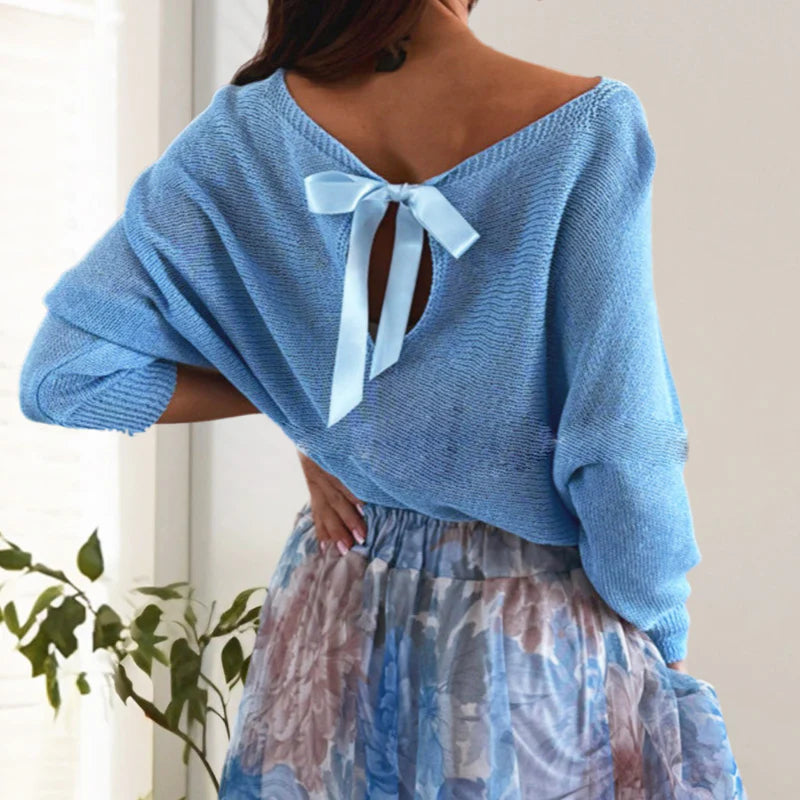 Niebieski dwuczęściowy komplet: niebieski top z kokardą na plecach i spódnica z tiulu✨