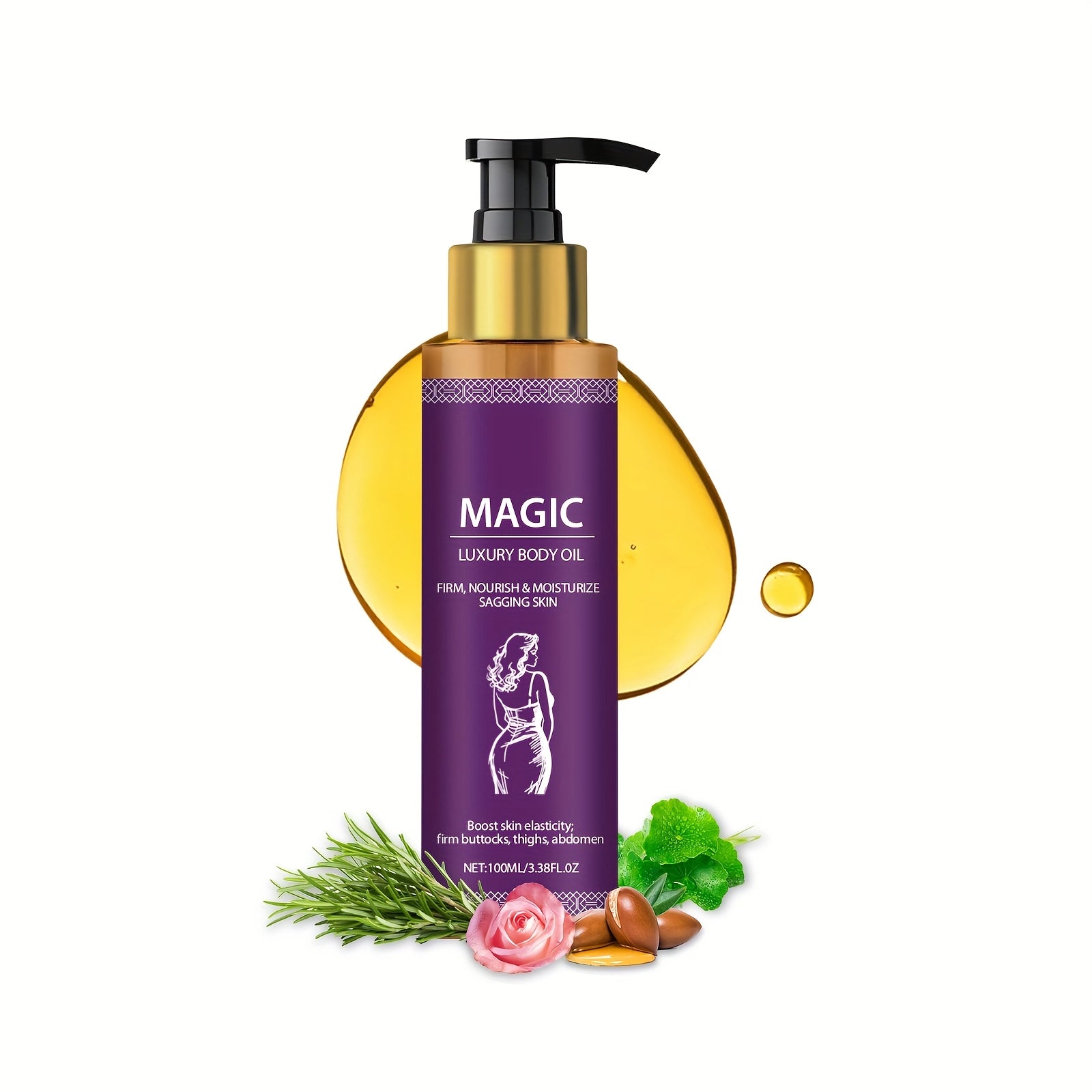 ulei de masaj magic pentru firmitate corporală 100ml cu unt de shea si - ulei hipoalergiczny bez perfum odżywczy pentru toate tipurie, întărește și hydratază coapsele, șolduri, brzuchul, subrațe, imbărățește circulația, design elegancki al sticlei, infuzat cu Szczegóły artykułu 6