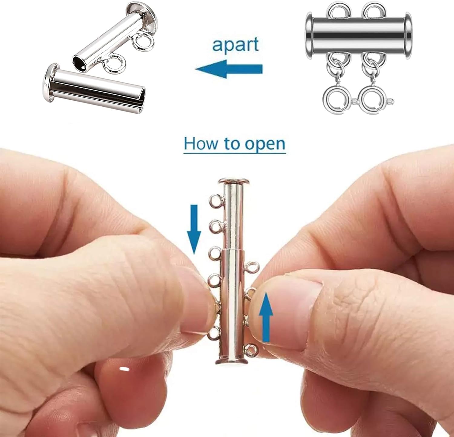 - ZACHOWAJ BEZPIECZEŃSTWO NASZYJNIKA: W porównaniu ze standardowym zapięciem magnetycznym, to zapięcie na naszyjnik jest zapinane na suwak i jest bezpieczniejsze. Zmontowaliśmy pętelki i karabińczyki przed dostarczeniem tych magnetycznych zapięć rurkowych. To oszczędza mnóstwo czasu. Po zapięciu naszyjników możesz jednocześnie zakładać i zdejmować wszystkie naszyjniki warstwowe, wsuwając lub wysuwając zapięcie.