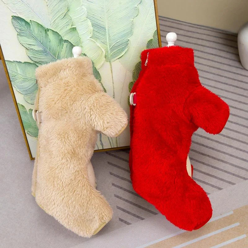 LUKSUSOWY KORALOWY AKSAMIT: Wykonany z miękkiego i przytulnego koralowego aksamitu, ten kombinezon zapewnia wyjątkowe ciepło i wygodę, idealny do przytulania psa w chłodne zimowe dni.