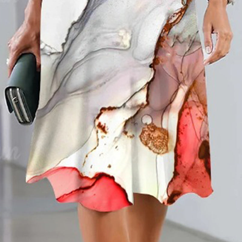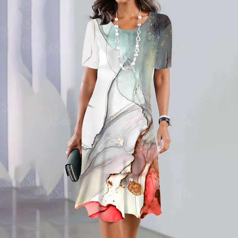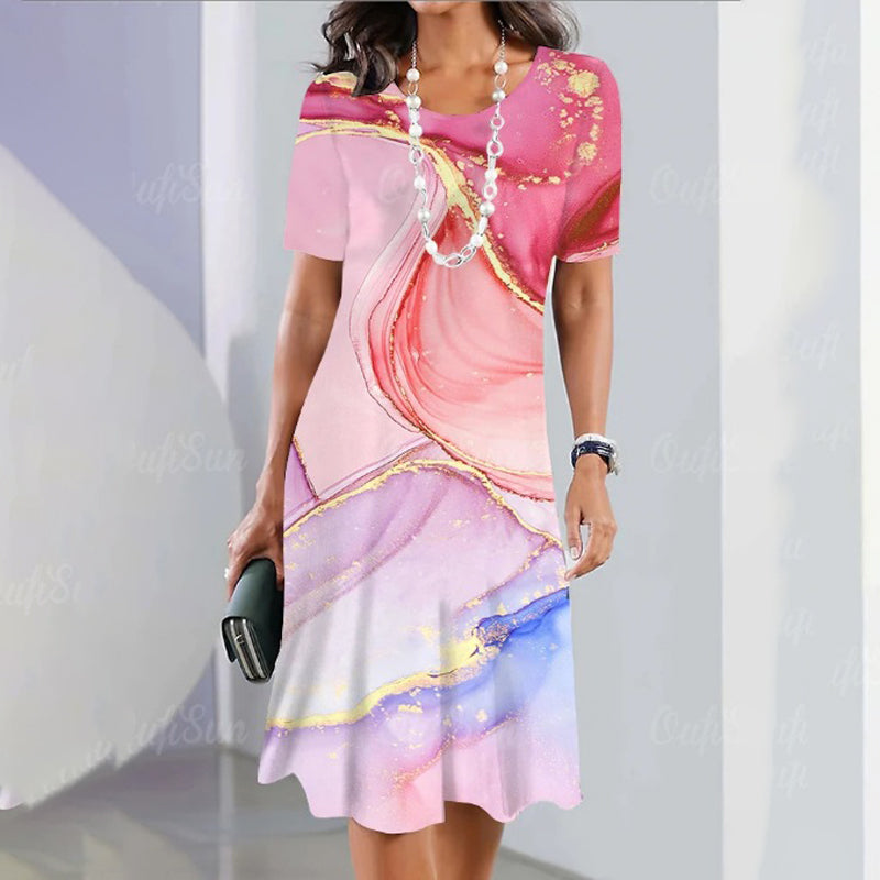 PRZYCIĄGAJĄCY UWAGĘ WZÓR: Ta sukienka wyróżnia się wyrazistym, żywym wzorem, który podniesie poziom Twojego stylu, tworząc nowoczesny, elegancki wygląd idealny na nieformalne wyjścia lub półformalne wydarzenia.
