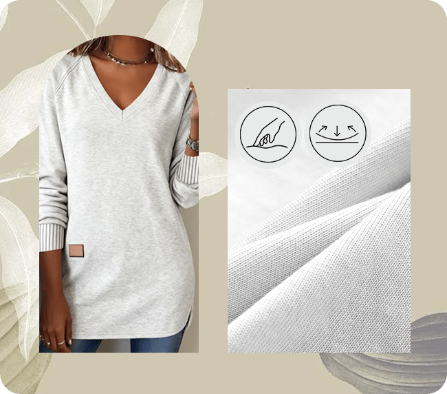 To, co najlepsze z obu światów. Łączy w sobie wygodę klasycznego swetra (miękki materiał, luźny krój) z czystymi liniami topu z dekoltem w serek. Noś go z krótkim kardiganem w chłodne wiosenne poranki; noś go sam w słoneczne jesienne popołudnia, aby wyeksponować dekolt w serek – jeden element, dwa fasony, zawsze wygodny.