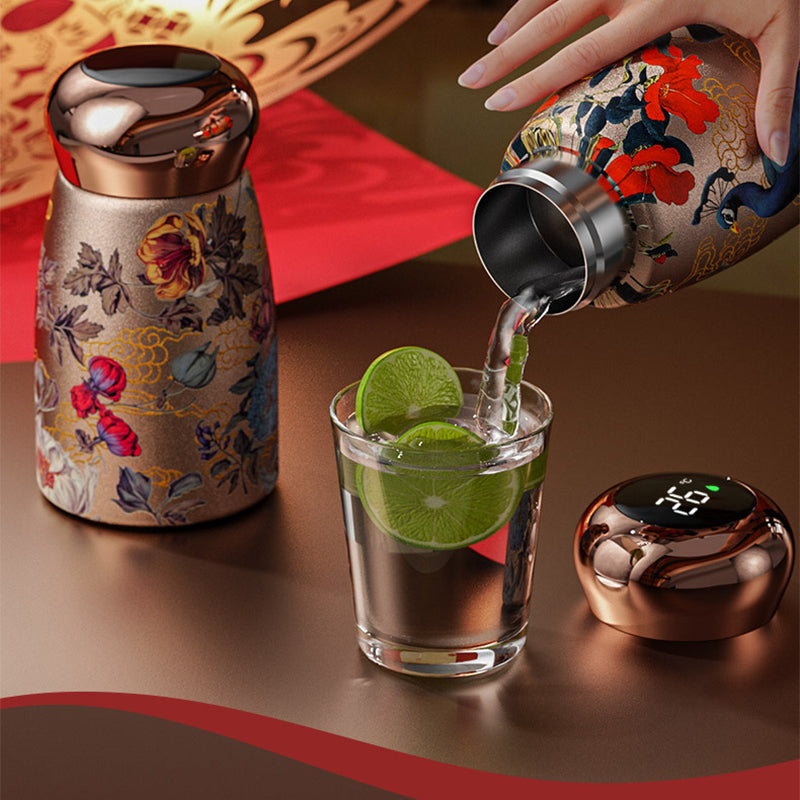 INTELIGENTNY WYŚWIETLACZ TEMPERATURY LED: Wbudowany inteligentny ekran wyświetla temperaturę wewnątrz butelki w czasie rzeczywistym – nie musisz już zgadywać, czy woda jest za gorąca czy za zimna podczas picia.